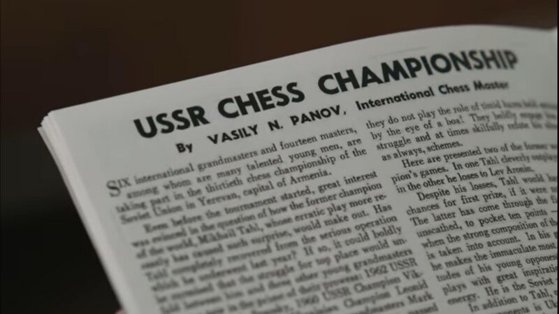 A brief glimpse of a newspaper in the show The Queen's Gambit references a "thirtieth chess championship of the Soviet Union in Yerevan, capital of Armenia."